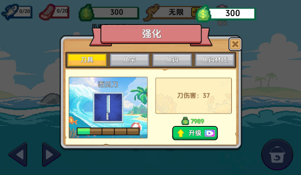 2、你可以随心所欲地探索浩瀚的海洋世界,捕捉各种鱼类,升级刀具更好地完成清理鱼鳞提高完整度。