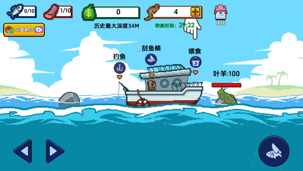6、血量减少为零时就会获得钱币奖励,如此往返来钓鱼,非常有趣。