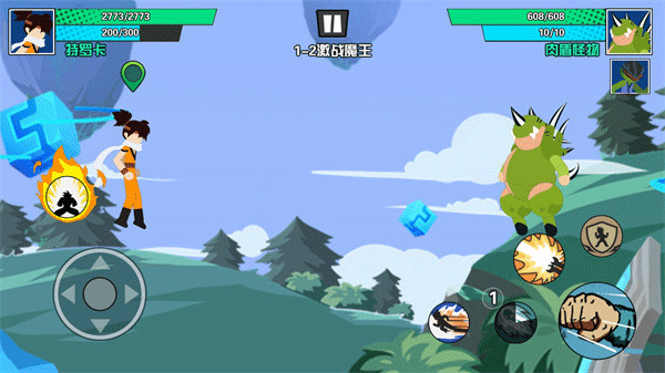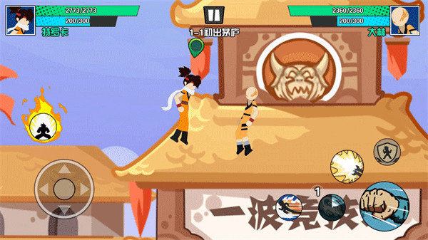 4、然后进入游戏,左边轮盘控制人物角色进行移动,右边按键可以发起进攻;