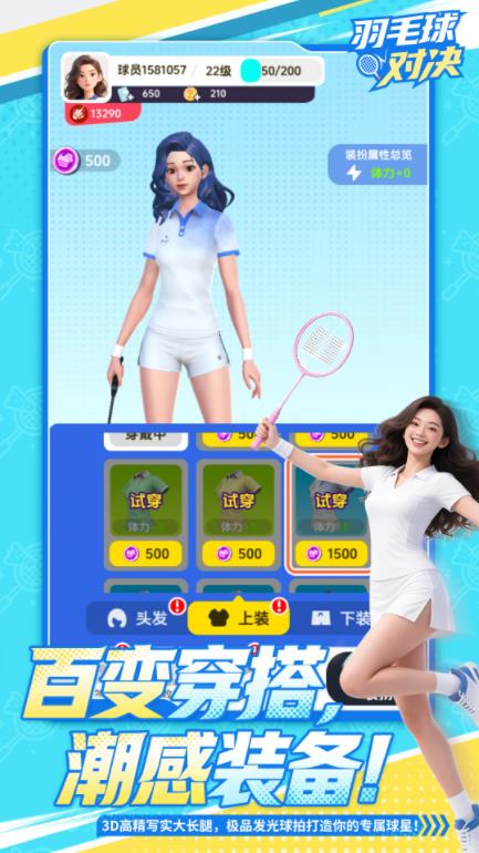 1、快节奏的趣味羽毛球对抗,不断提升角色的属性。