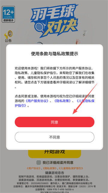 我们先点击游戏图标进入羽毛球对决,然后点击同意