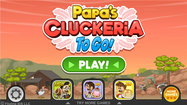 1、进入老爹炸鸡堡店游戏点击屏幕中的PLAY。