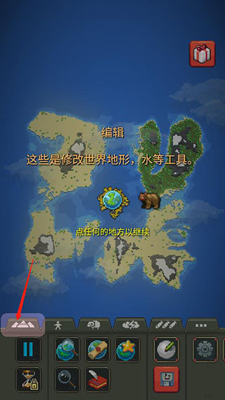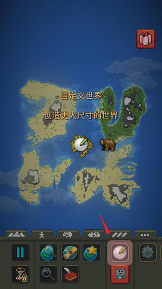 7、如下图所示,这个编辑按钮可以修改世界地形、水等;