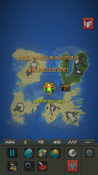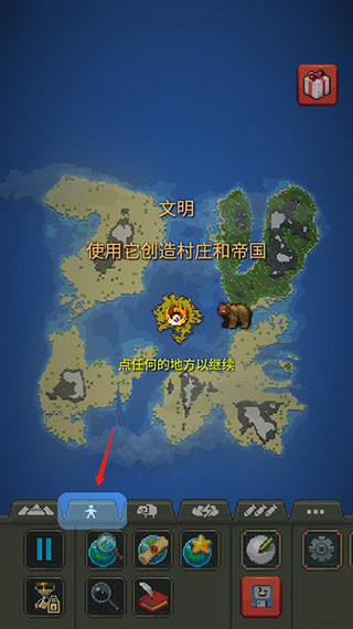 1、在我的文明模拟器游戏中打造新纪元,创造一个文明的世界,用不同的工具塑造出绘画,利用智能像素进行上色,在模拟大陆上感受生物的力量。