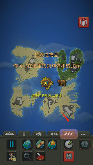 1、首先需要一张与图中相似的地图,利用我的文明模拟器中的大岛安置村庄,小岛用于培养“神级”角色。
