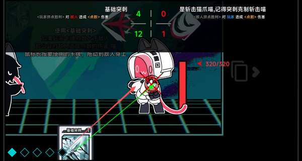 1、在文件未命名喵中,你将扮演一只勇敢的喵喵,向着由程序漏洞组成的高塔发起挑战。通过巧妙组合手中的卡牌,打出华丽的连击来战胜敌人。