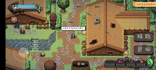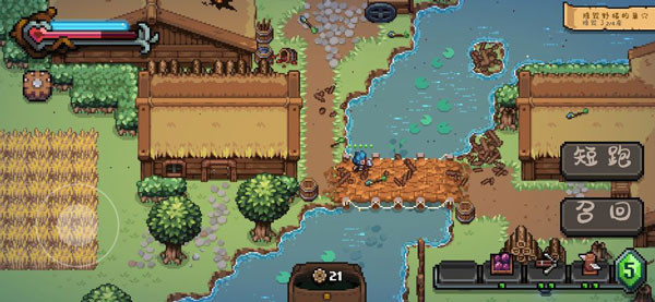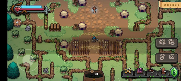 第一介绍,战匠杜沃完整版是个像素塔防类游戏,左边上下左右移动,右边一个冲刺,一个召回。现目前出现的就是三个防建,一个是近战的旋风刀,一个远程的箭塔,最后一个减速的焦油地。