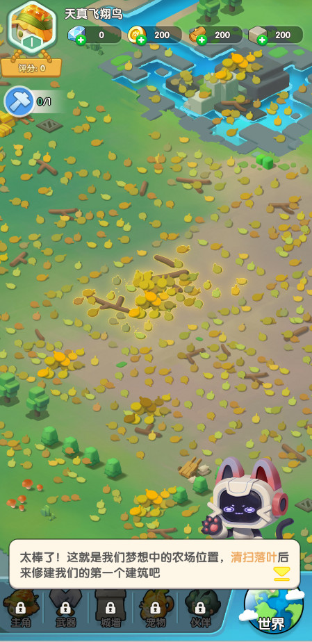 2、获取资源后,玩家可投入农场建设,升级建筑、解锁新区域,同时养成装备和工具。