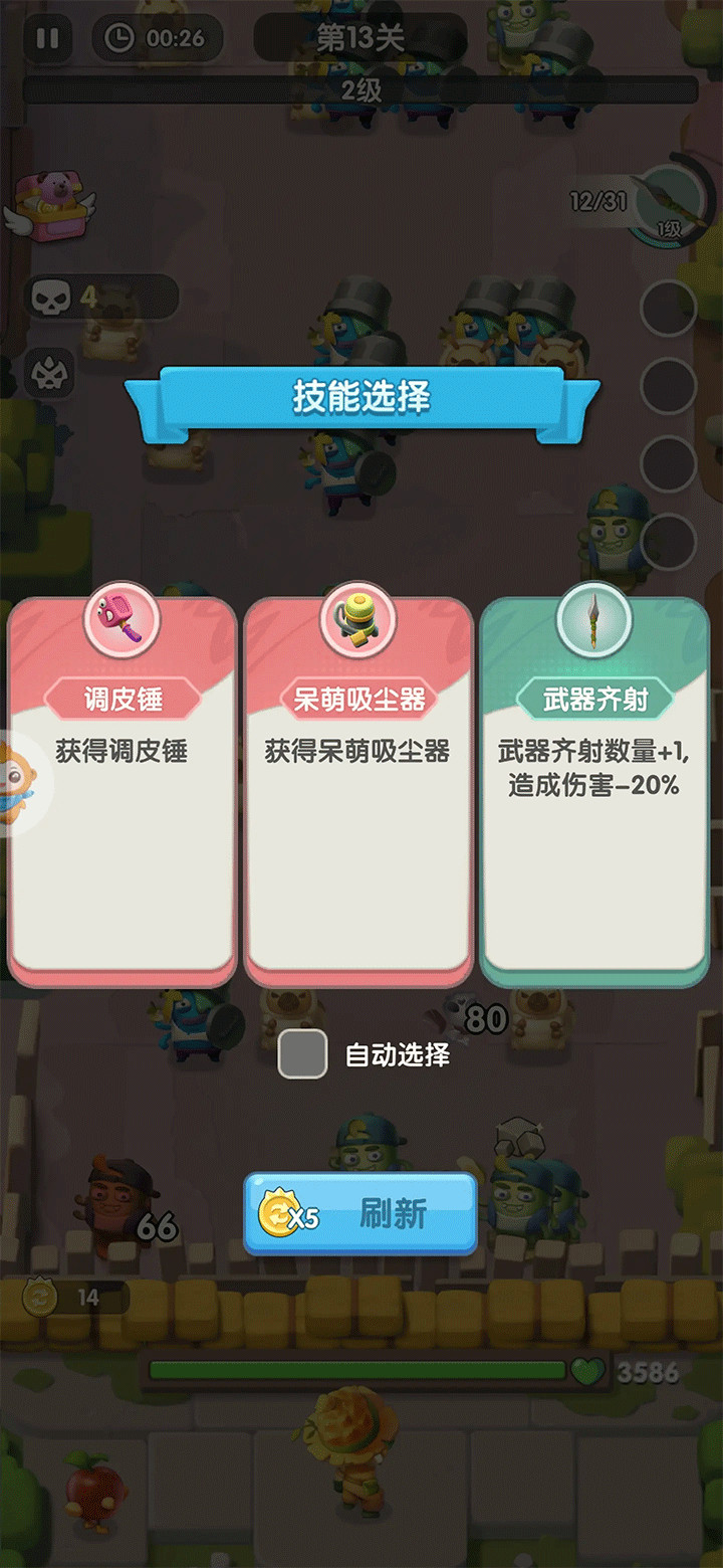 2、点击选择其中一个技能,攻击力全新升级,消灭大量的害虫,获取丰富的资源。