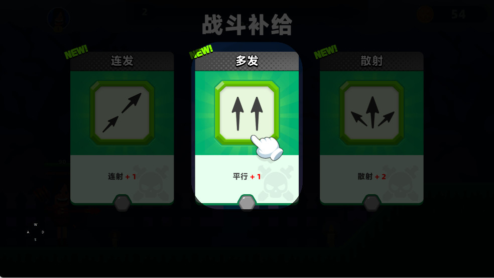 2、每升一级都可以在游戏中选择相对应的技能,当敌人较多时可以快速清屏。