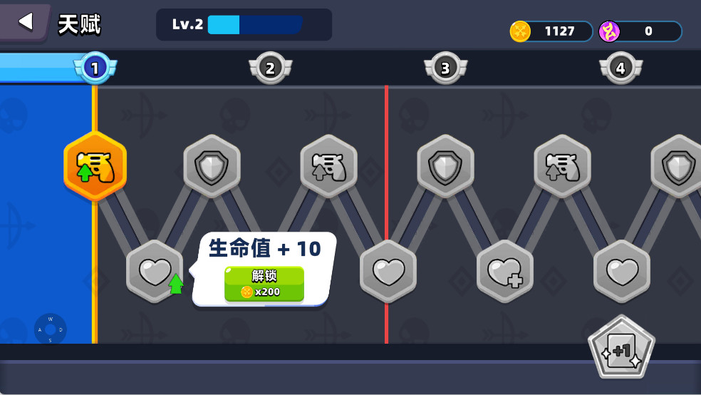 4、当关卡过不去时候可以前往天赋功能进行技能升级。