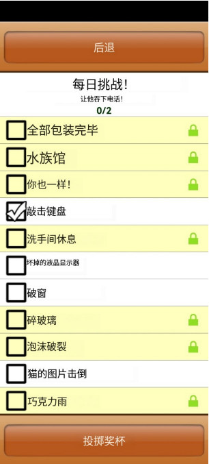 4、完成办公室捣蛋鬼中文版右上角奖杯中的成就清单,可逐步解锁新道具,如蛋糕派、僵尸面具等趣味恶作剧物品。