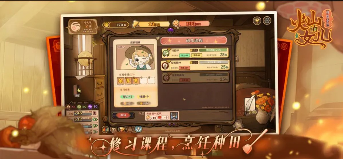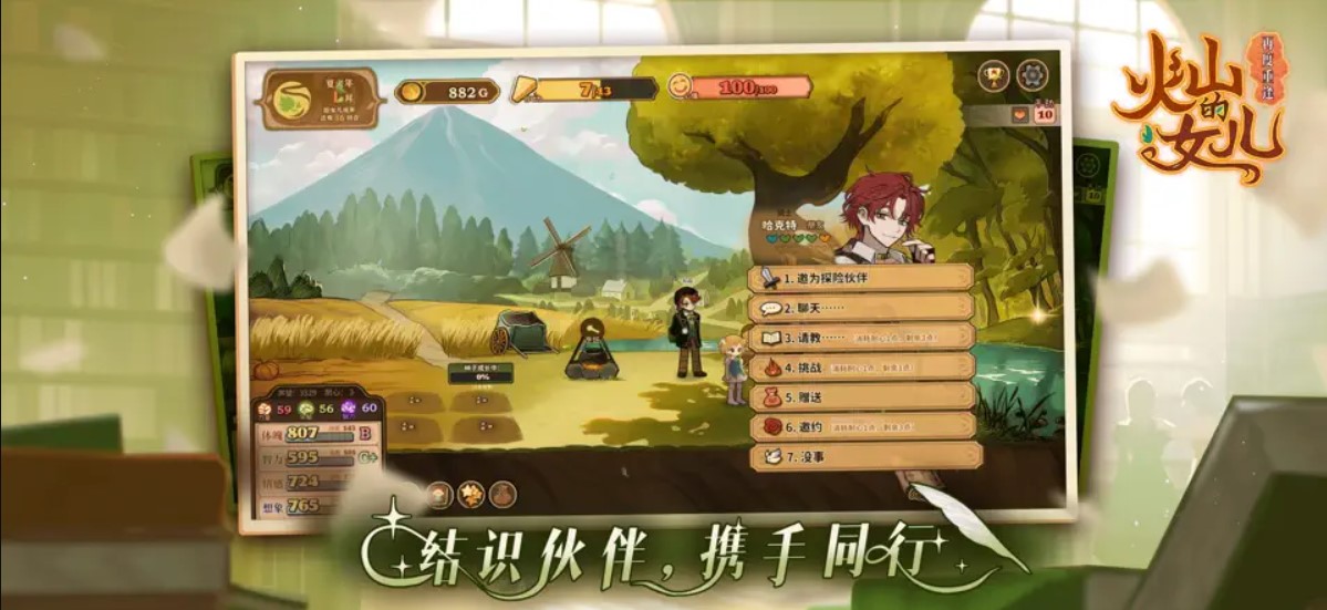 火山的女儿再度重逢手机版场景中的交互选项可以提高女儿属性不同选项消耗的行动力也不同。