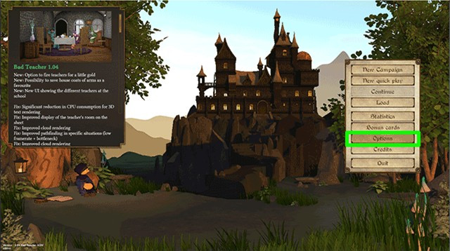 1、运行咒术师学院手机版游戏后,在主菜单界面选择并点击“Options”的选项进入设置界面。