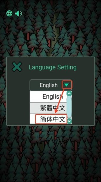 1.进入森林有鬼游戏后点击左上角的网络地球图标