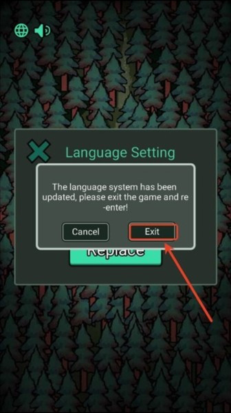 4.语言系统已经已更新,请退出游戏并重试,点击“Exit”后退出游戏并重启