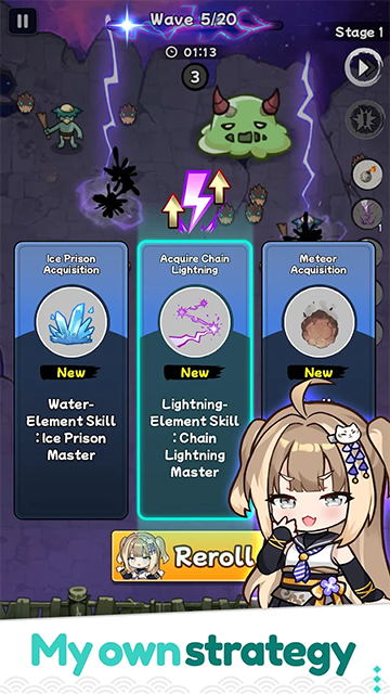 忍者喵喵保卫村庄把肉鸽成长放进每轮闯关里,玩家每次进入战斗后拿到的强化内容都可能不同,因此培养方向不会完全固定。有时偏向快速清杂兵,有时更适合堆叠持续输出或强化生存能力,这种变化也让重复挑战不容易发闷。