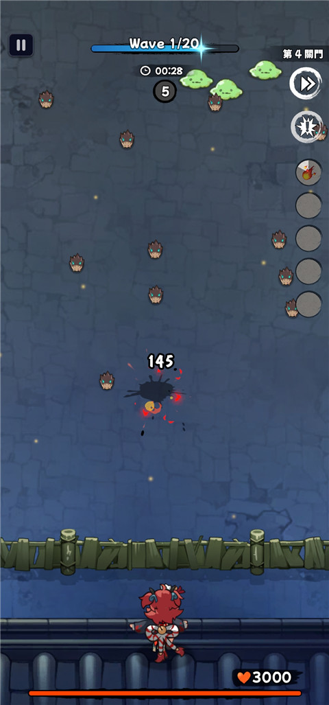 1、进入忍者喵喵保卫村庄关卡后,忍者角色将自动展开攻击,无需手动操作基础输出。