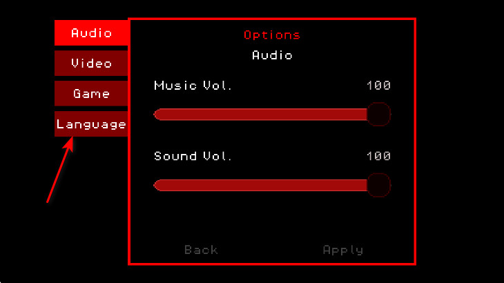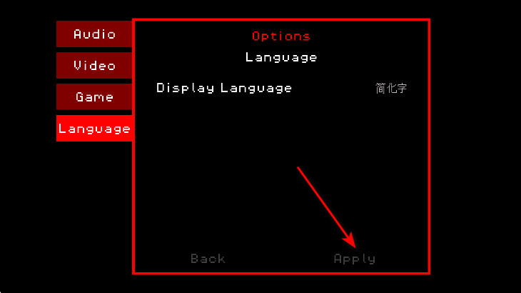 1、进入超级黑暗欺骗正式版游戏,你会发现是英文的,我们往左边滑动找到选项。