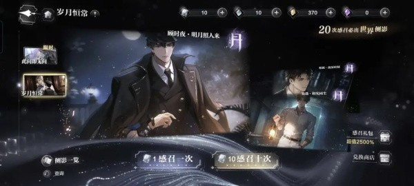 顾时夜是世界之外四大男主之一,还不清楚游戏公测时会不会换,他是一位风度翩翩的商人,他的聪明才智和商业头脑为他赢得了无数的财富。他对女主角产生了好感,并且在游戏中扮演了一位坚定的支持者和保护者。