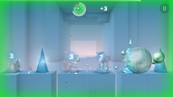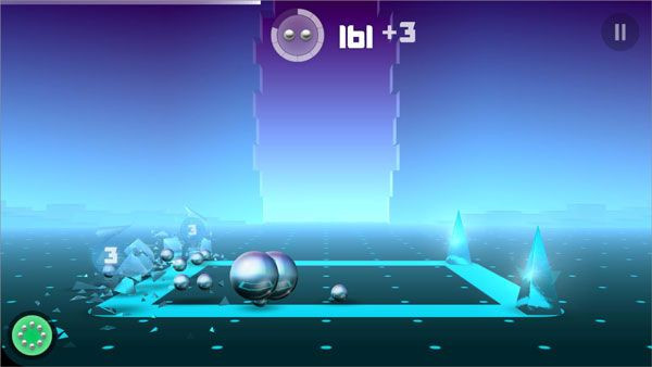 3、游戏有蓝色锥形和紫色菱形等玻璃体的存在,玩家可以通过打碎它们来获取不同数目的弹珠;