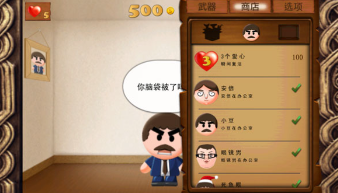 1、进入暴打老板游戏后,玩家能够在游戏内对BOSS进行发泄,购买武器;