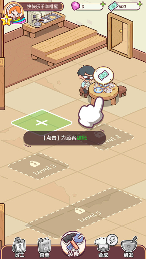 1、幸福甜点咖啡店单机版采用卡通的画面设计,场景清新可爱,带来视觉上的舒缓。