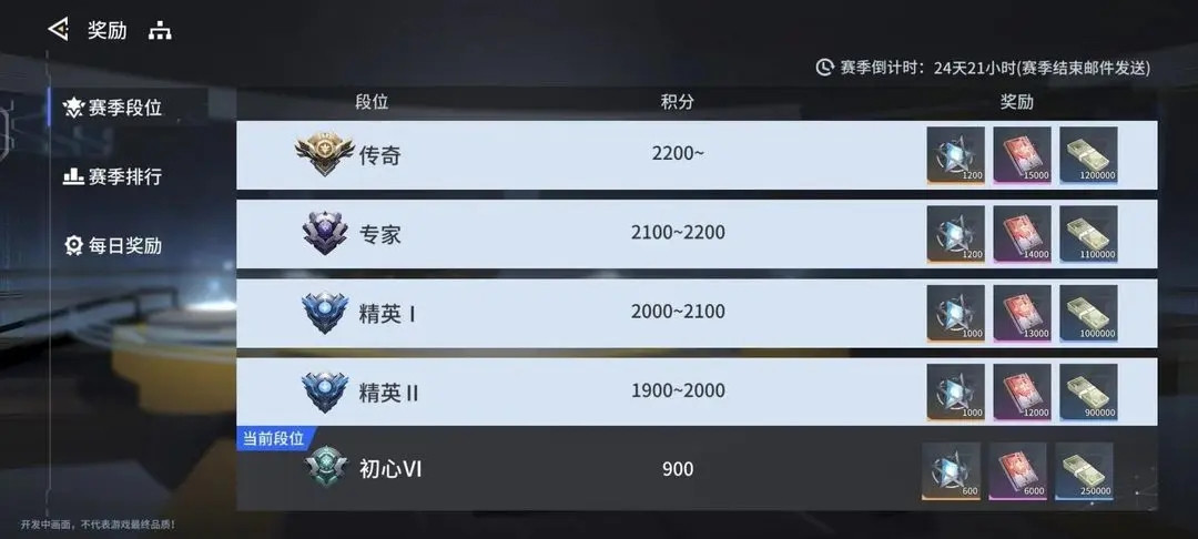 5、还可以在奖励页面查看赛季段位和排行,【每日奖励】可以每天登入领取;