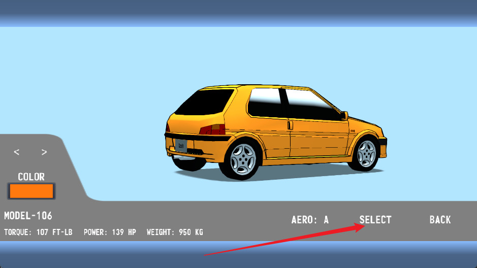 3、进入车辆选择页面后,你可以自由切换车型并修改车辆颜色,打造属于你的赛车风格。