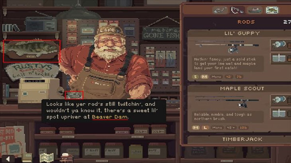 不过,在购买新执照之前,你可以继续前往金叉河的下一个地点。在The Fork钓到传奇白尖后,回到钓具店,按小费罐。Rusty会告诉你一个新地点——Beaver Dam,你可以在地图上直接进入,无需购买许可证。