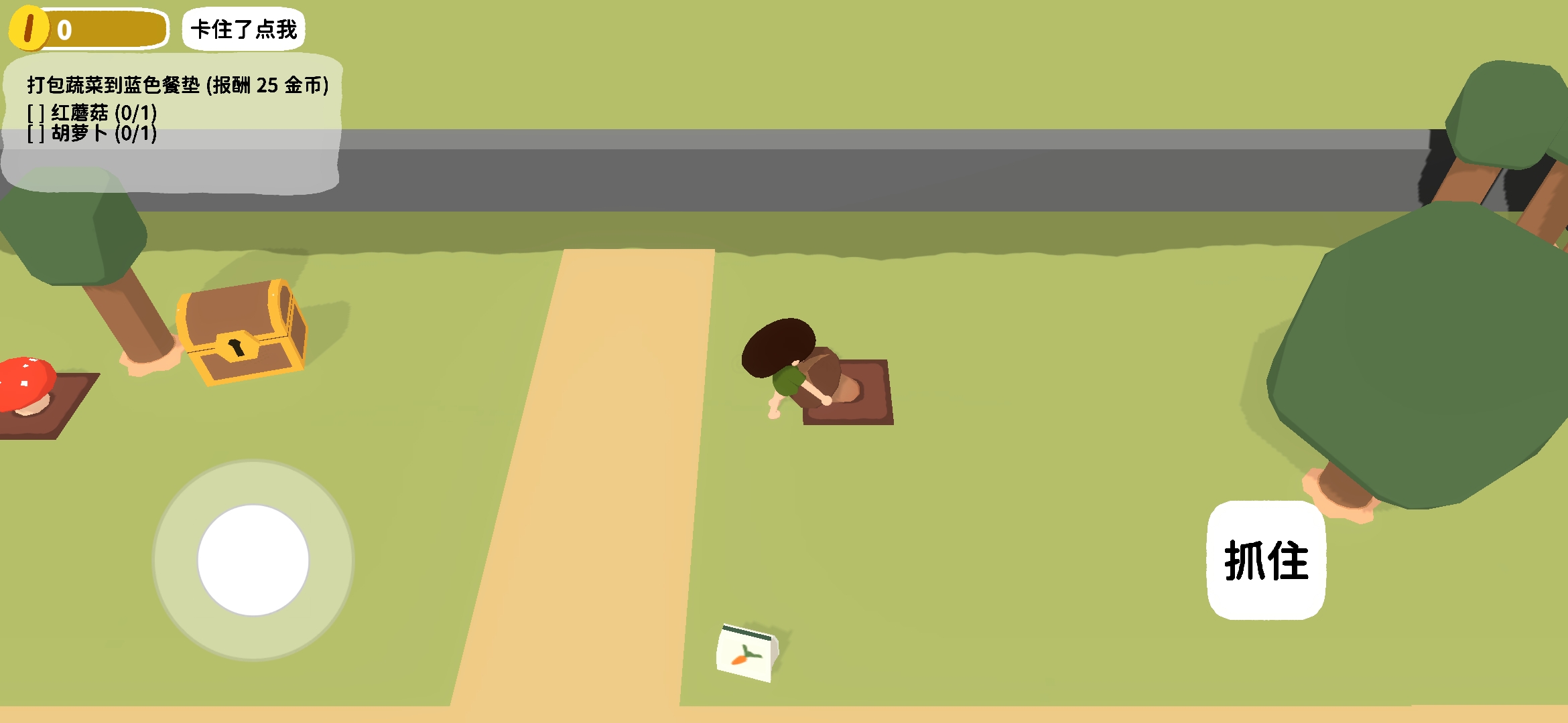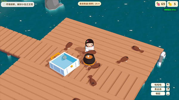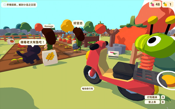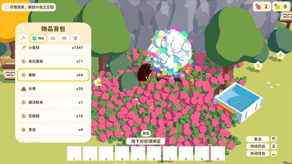 首先,恭喜你来到了这个神奇的小岛上,开始探索吧。左键/F可以抓住/拾取、左键使用、空格打开背包、A/D切换背包左右选项。