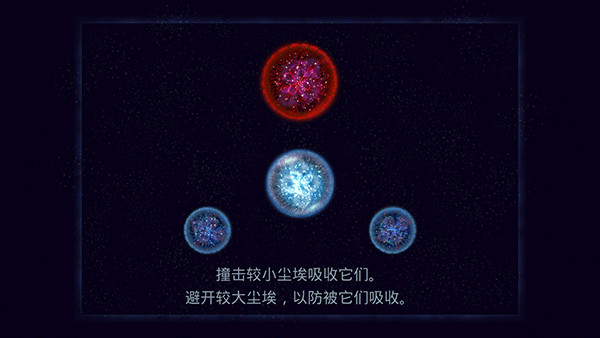 2、进入达尔文描述的星系尘埃世界。为了生存,需要吸收较小有机体后变大——但要小心更大的捕食者。