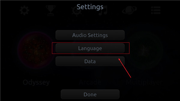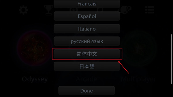 1、进入星噬中文版游戏后,点击左上角设置-language选择简体中文。