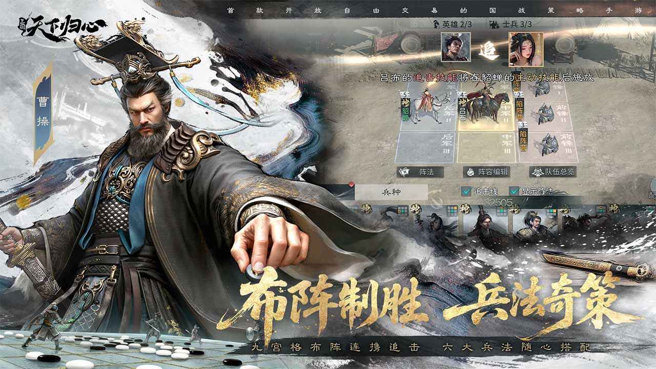 三国天下归心是面向Z世代玩家打造的新国战SLG手游,以轻松策略与高自由度玩法为核心,打破传统SLG中繁琐的养成与重复节奏。三国天下归心官方正版游戏强调“策略爽感并存”的体验,让玩家在更短时间内也能享受到大规模国战的紧张与刺激。三国天下归心游戏融合自由交易、自由转国以及多样战术系统,如九宫格布阵与特色追击机制,使战场变化更加灵活多变。支持本服与跨服同场竞技,扩大对抗维度与策略空间。