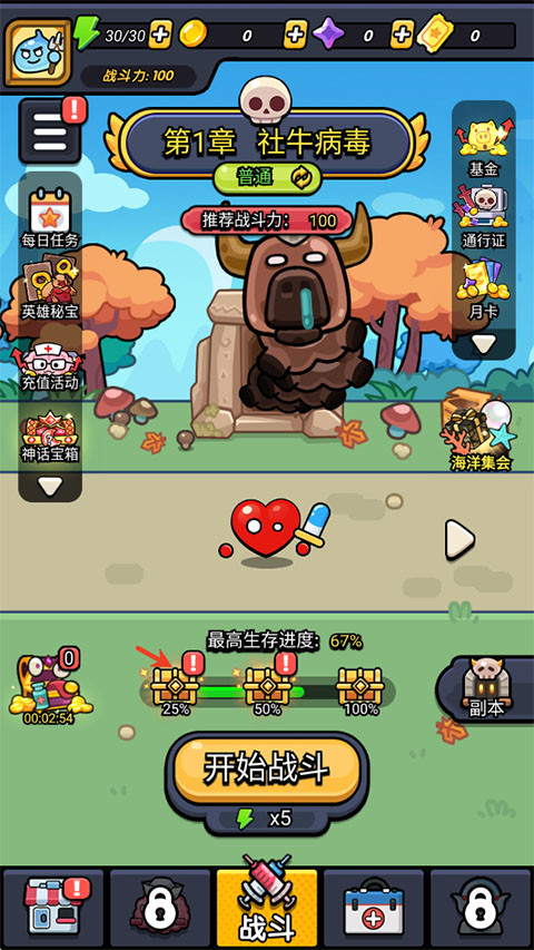 4、而当生存进度达到百分百,就可以来领取宝箱了。
