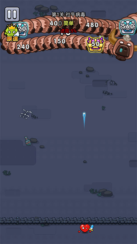 2、能率领细胞军团在微观世界与病毒战斗,击落宝箱获取加成强化弹幕射击能力,压制百分百赢关卡。