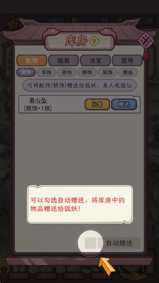 1)可以将配饰赠送给狐妖、美人或狐仙。