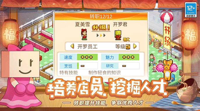 1、美食梦物语中文版秉承开罗游戏一贯的像素美术风格,经典而又与众不同。