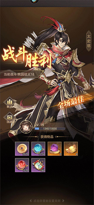 2、战斗结束后,如果想回看刚才的战斗过程,也可以点击回放,进行观察研究。点击统计,可以看到武将在战斗过程中的输出或治疗等数据。