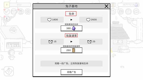 3、选择升级基地血量;