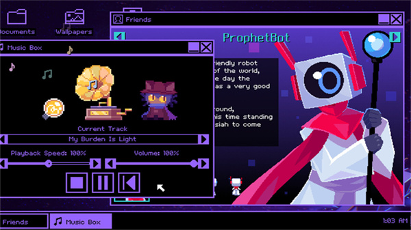 2、桌面壁纸、音乐等元素会与游戏内容联动,例如触发NPC对话,增强互动感。