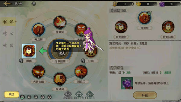 孙悟空主打高机动性爆发输出,擅长突进压制与节奏控制。其核心主动技能包括烈焰闪(附带无敌帧位移)、身外身(生成多个分身协同作战)、升龙斩(多段击飞衔接技)以及火魔斩(单体高额爆发)。推荐搭配被动技能“怒火狂暴”,可同步提升伤害输出与暴击率。该角色操作上限较高,适合追求连招流畅度、偏好先手开团与高效清怪的玩家。