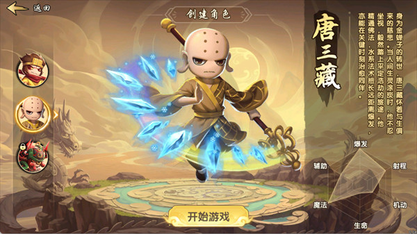 唐僧为远程持续输出型角色,兼具火力覆盖与团队续航能力。主要技能涵盖水魔爆(范围爆炸伤害)、灵光普照(群体治疗+增益)、正法金刚(护盾施加与反伤效果)以及水幻影(制造幻象干扰敌人)。推荐被动“禅心”,可在战斗中持续恢复生命并增强法术强度。该角色操作容错率高,适合倾向站桩输出、重视队伍支援与资源管理的玩家。