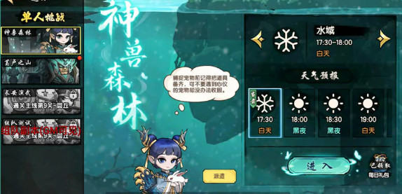 神兽森林现已开放林地、沙漠、水域三大区域,每片区域皆孕育独立的天气系统——烈日、暴雨、狂风、大雪或迷雾随时间交替流转。灵兽会依习性出没于特定区域与天气。沙洲羊现于沙漠烈日,锦鲤游在暴雨深水,灵毒蛇遇惊便隐入迷雾。途经入口时记得领取每日礼包,助你更快驯服灵宠!