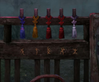 按前面场景跳广场舞的颜色顺序将绳结颜色改成对应颜色。