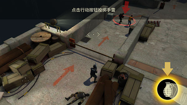 5、敌人较多时,还可以点击右侧炸弹图标,瞄准并投掷手雷,开始自由探索射击吧。