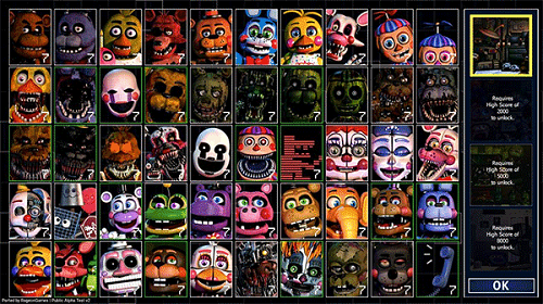 1、在Freddy的游戏中,你可以选择接近50个玩具熊的来进行七天五夜的生存,而这些定制的角色是不限制的,你想怎么搭配都可以,甚至可以将你喜欢的角色形象和人物都加入进去。