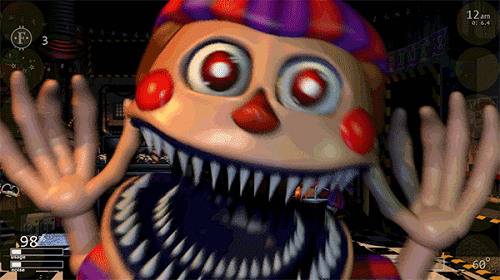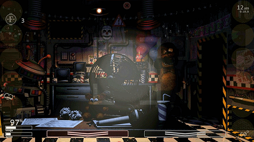 Freddy fazbear:出现于cam1,分四个阶段逐渐靠近,当他达到四阶段时关左门(a)防御,否则跳杀,温度越高,他移动越快(他必须开监控才能跳杀)