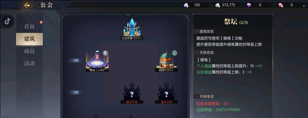 6、公会建筑,由会长升级,需要消耗公会资金,优先升级主城,主城等级越高,公会可以接纳更多成员