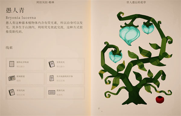 2、随后可打开柜子旁的包裹,获得一本重要的植物学书籍,书中不仅记录了庄园各个房间的分布,还收录了详细的植物图鉴,是后续探索与解谜的关键参考。